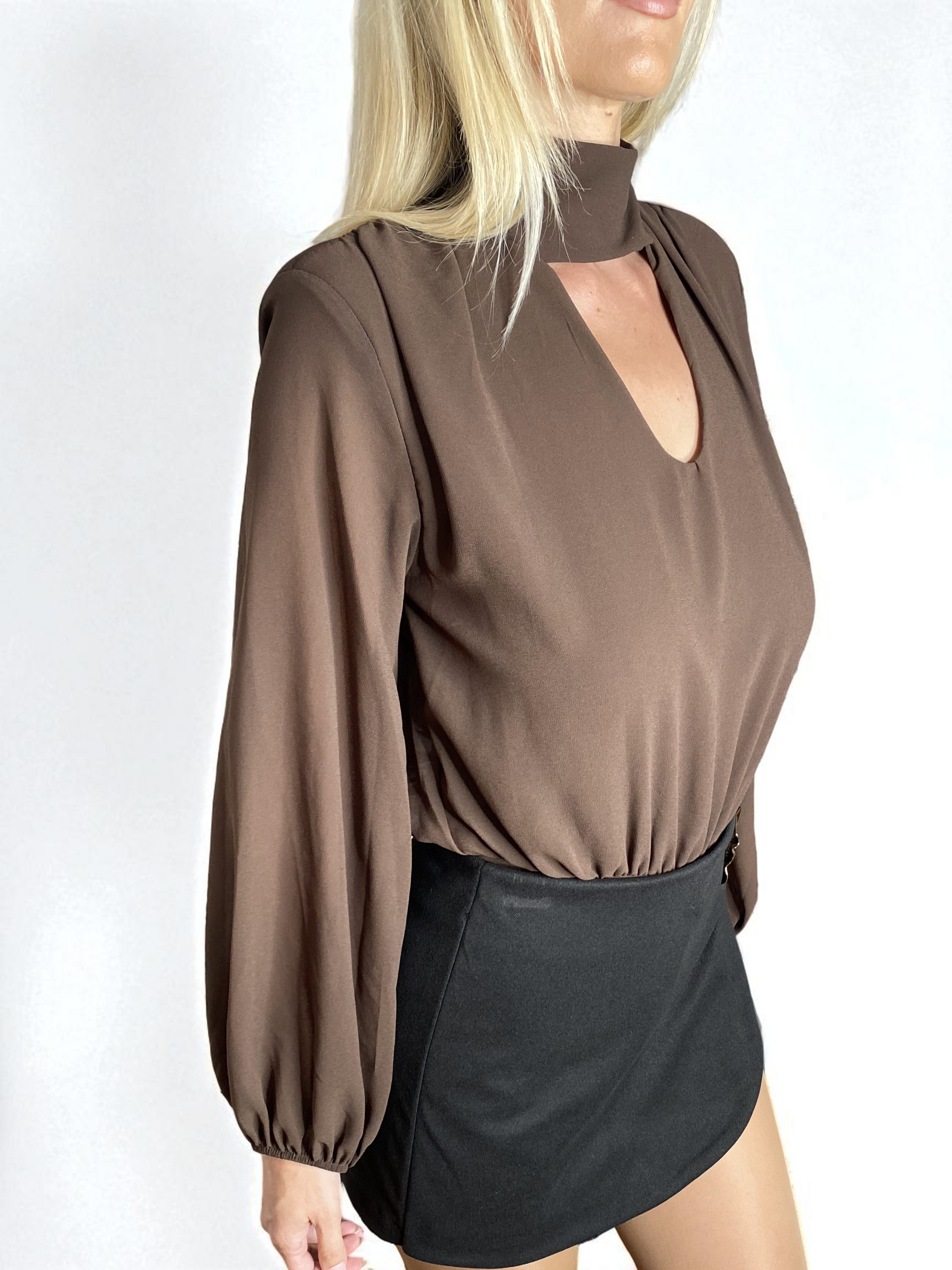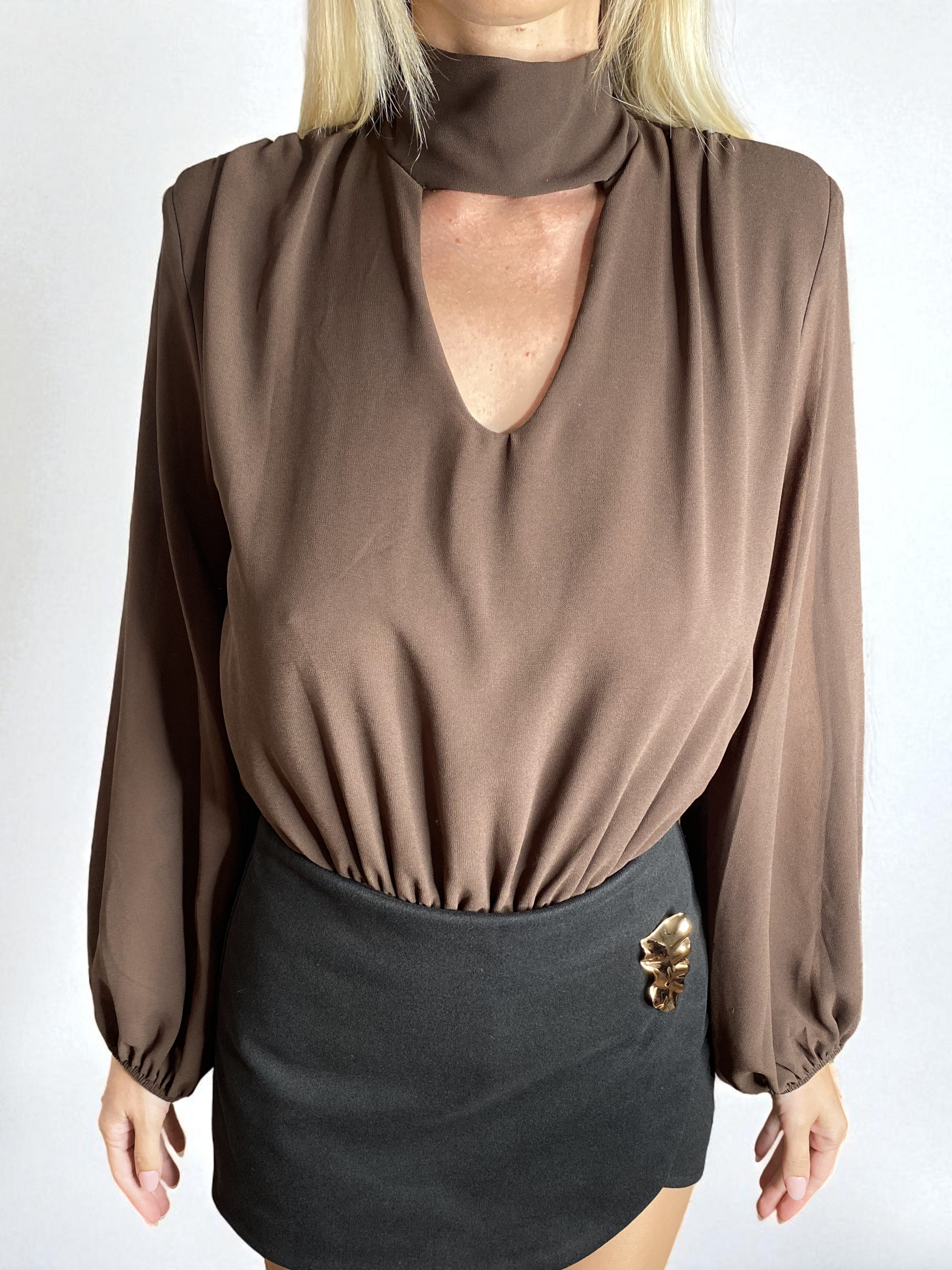 Elegancia y ligereza para tus looks de otoño e invierno. Este body de gasa de manga larga destaca por su abertura en la espalda, que realza la silueta de forma sutil y femenina.